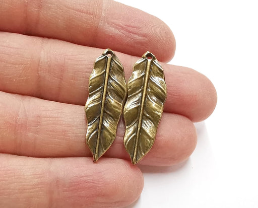 2 Feather Charms Antique Bronze Plated Charms (55x15mm) G21212