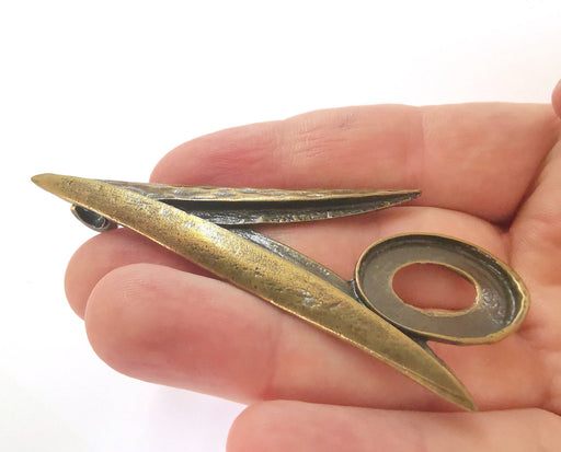 Antique Bronze Pendant Blank Cabochon Bezel Antique Bronze Plated (88x35mm)(24x17mm Blank) G21438