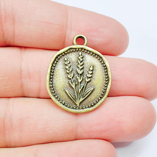View full detailsLavender Flower Charm Pendant, Botanical Floral Design, Antique Bronze Plated, Round Shape, 28x24mm, G37825
