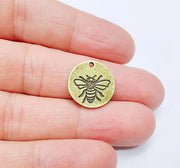 This antique gold plated bee charm is perfect for your jewelry-making projects! Crafted from high-quality brass with a beautifully detailed honeybee engraving, this round pendant adds a touch of nature to any design. Measuring approximately 15mm, it is ideal for necklaces, bracelets, earrings, and other creative DIY crafts. The small hole at the top makes it easy to attach with jump rings or wire. Whether you're designing nature-themed jewelry or adding a symbolic touch to your work, this bee charm is a great choice!