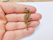 Flower Branch Pendant, Botanical Charm, Daisy Floral Necklace Supply, Nature Inspired Jewelry Making, Antique Bronze Plated 46x17mm G37150