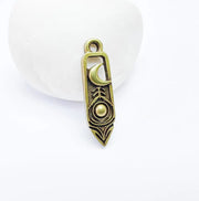 Crafted with precision and artistic design, this antique bronze plated pendant features a crescent moon and a central orb motif, adding a touch of celestial beauty to your jewelry projects. Perfect for creating necklaces, bracelets, or earrings, this unique charm blends vintage style with modern elegance. Made from high-quality materials, it ensures durability and lasting shine. Enhance your DIY creations with this timeless design, ideal for boho, gothic, or minimalist styles.