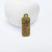 This antique bronze plated rectangular pendant features a beautifully engraved lily design, symbolizing purity and elegance. Perfect for nature-themed, minimalist, or vintage-inspired jewelry, this charm is ideal for necklaces, bracelets, or earrings. Crafted with high-quality materials, it offers both durability and intricate detailing. The timeless lily engraving makes it a meaningful addition to your handmade jewelry collection, complementing a variety of styles with its graceful and versatile design.