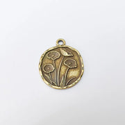 This round pendant features an elegant poppy flower design with delicate botanical details, blending boho and vintage-inspired style. Crafted from high-quality zamac metal and finished with antique bronze plating, this charm is durable, nickel free, and lead free ā safe for everyday wear.