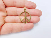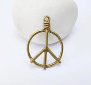 Peace Symbol Pendant Charm, Boho Hippie Jewelry Supply, Spiritual Retro 60s Style Necklace Component, Antique Bronze Plated 34x24mm G37107
