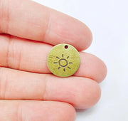 This unique antique bronze pendant features an engraved sun design, adding a touch of rustic elegance to your handmade jewelry creations. Crafted with care, the round charm is perfect for necklaces, bracelets, or other DIY projects. Its versatile and lightweight design ensures easy use in various styles, from bohemian to minimalist.