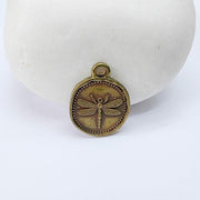 Capture the spirit of transformation and double sided grace with this antique Bronze plated dragonfly pendant. This beautifully crafted round charm features a raised dragonfly motif framed by a delicate beaded border—perfect for nature-inspired and symbolic jewelry pieces.