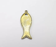 Fish charms are made of nickel free and lead free antique bronze plated zinc alloy metal. Size : 42x15 mm.