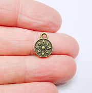 4 Bronze Round Flower Charm, Earring Charms, Dangle Bracelet Charms, Necklace Parts, Antique Bronze Plated 13x10mm G37028