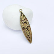 Flower Charms, Boho Charms, Earring Charms, Bronze Dangle Pendant, Necklace Parts, Antique Bronze Zamac 52x14mm G36832