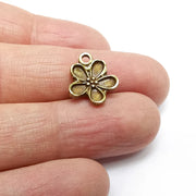 Daisy flower charms are made of nickel free and lead free antique bronze plated zinc alloy metal. Size : 16x14 mm.