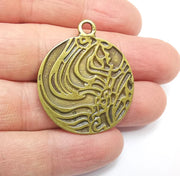 Disc, round antique bronze plated charms are made of nickel free and lead free zinc alloy metal. Size : 39x34mm