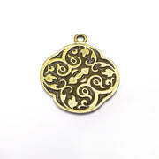 Branch, round antique bronze plated charms are made of nickel free and lead free zinc alloy metal. Size : 41x35mm