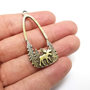 Moose Forest Charms, Wild Nature, Winter Theme, Pine Trees Antique Bronze Plated Charms (54x24mm) G34877