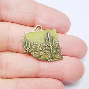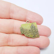 Desert Landscape Pendant, Boho Western Cactus Charm, Southwestern Jewelry, Mountain Nature Earring, Antique Bronze Plated 25x24mm G37483
