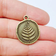This detailed pendant features a beautifully embossed fern leaf on an antique bronze surface. The vintage oval medallion style adds a timeless and earthy charm to any botanical or bohemian jewelry design. Ideal for necklaces, nature-inspired collections, or symbolic gifts.