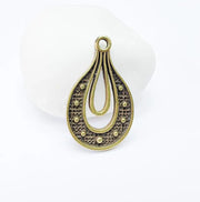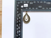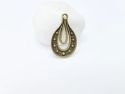 Teardrop Pendant, Filigree Boho Charm, Vintage Drop Jewelry, DIY Craft Rustic Elegant Necklace Supply, Antique Bronze Plated 36x22mm G36920
