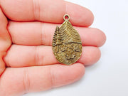 Mountain Flower Pendant, Nature Boho Charm, Rustic Outdoor Necklace, Wildflower Adventure, Antique Bronze Plated Zamac 39x23mm G37280