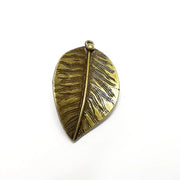 Leaf Charms, Long Leaf, Veined Leaf, Nature, Dewdrop Antique Bronze Plated (48x28mm) G34910