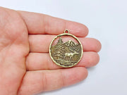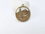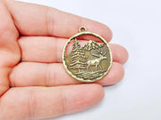 Elk Pendant, Deer Charms, Moose Forest Wildlife Charm, Mountain Tree, Rustic Boho DIY Craft Supply, Antique Bronze Plated 39x34mm G36980
