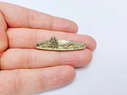 This mountain tree bar connector features a scenic landscape with a raised evergreen tree and engraved mountain range. With two holes for easy stringing, it's ideal for creating nature-inspired bracelets, minimalist necklaces, or rustic outdoor-themed jewelry. A perfect charm for hikers, forest lovers, and handmade gift makers.