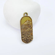 Floral Mountain Charm, Nature Pendant, Hiking Necklace Supply, Outdoor Adventure, Boho Rustic Earring, Antique Bronze Plated 39x15mm G36933