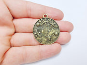 Ocean Dream Pendant, Nautical Sea Life Charm, Beach Boho Earring Charms, Dangle Pendant, Antique Bronze Plated Zamac 39x34mm G36715