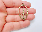 Peace Symbol Pendant Charm, Boho Hippie Jewelry Supply, Spiritual Retro 60s Style Necklace Component, Antique Bronze Plated 46x24mm G37264