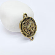 Lily Flower Charm Connector, Round Botanical Floral Design, Antique Bronze Plated, 34x24mm, G37742