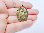 Raven and Moon Charm Pendant, Gothic Boho Charm, Nature Earring Charm, Mystical Bird, Necklace Parts, Antique Bronze Plated 40x28mm G36716