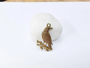 Raven Charm Pendant, Gothic Boho Charm, Nature Earring Charm, Mystical Bird, Necklace Parts, Antique Bronze Plated 39x25mm G37018