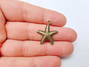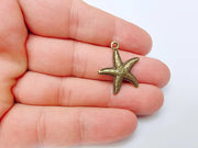 5 Starfish Charm, Bronze Sea Star Pendant, Nautical Boho Beach Jewelry Supply, Ocean Theme Pendant, Antique Bronze Plated 26x23mm G37277