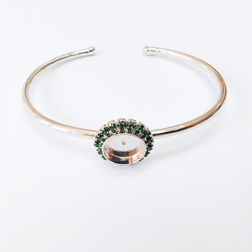 View full detailsGreen Crystal Bangle Bracelet, Shiny Silver Adjustable Cuff, 10mm Bezel Jewelry Making Supplies, G37399