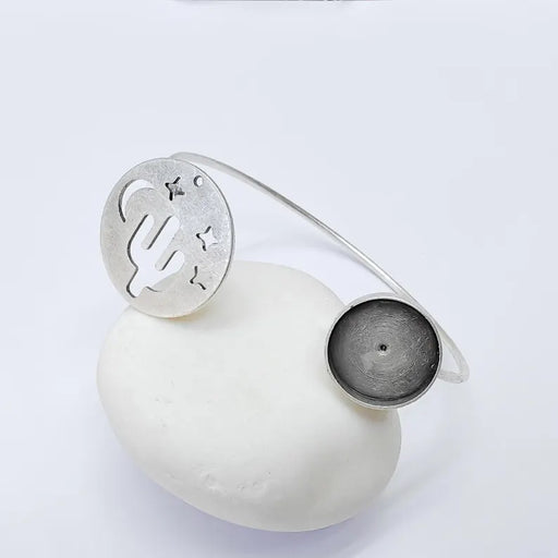 View full detailsCactus Moon Adjustable Bracelet, 14mm Bezel Setting Cuff Bangle, Antique Silver Plated Brass Jewelry Base for Cabochons, G37513