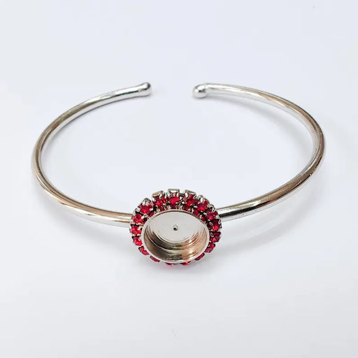 View full detailsRed Crystal Bangle Bracelet, Shiny Silver Adjustable Cuff, 10mm Bezel Jewelry Making Supplies, G37415