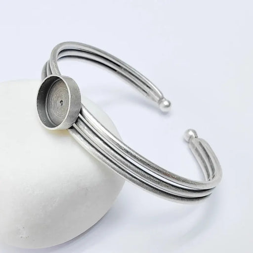 View full detailsAdjustable Bracelet Base with 12mm Round Bezel, Antique Silver Plated Brass, Nickel Free Lead Free, Jewelry Making Supplies, G37467