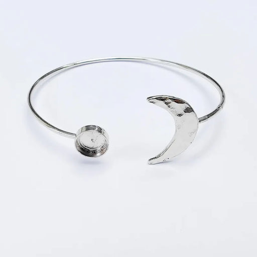 View full detailsMoon Cuff Bracelet with 8mm Bezel, Adjustable Shiny Silver Plated Brass Bangle, G37576