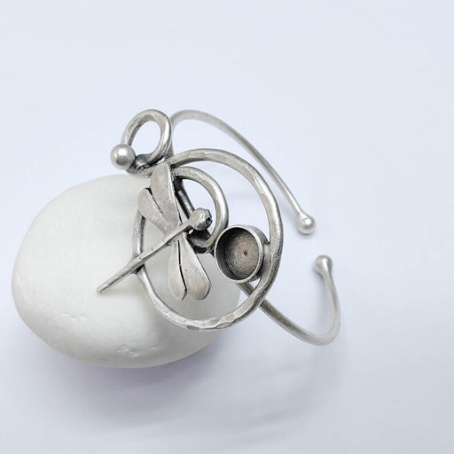 This adjustable dragonfly cuff bracelet features an artistic open-circle design paired with an 8mm round bezel—perfect for resin art, cabochons,...