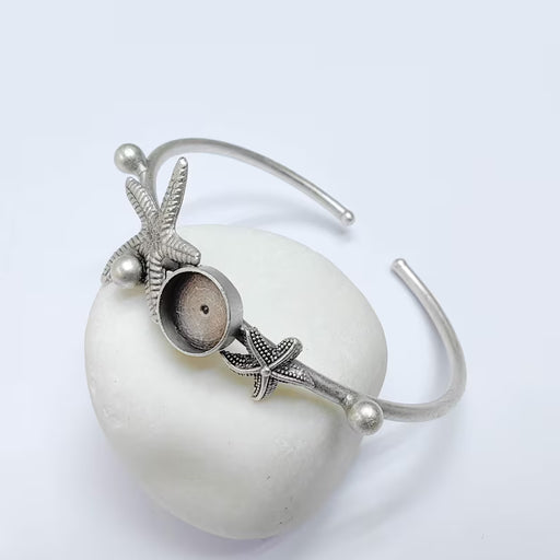 View full detailsStarfish Bezel Bracelet Base, 8mm Setting, Antique Silver, Adjustable Cuff, G37661