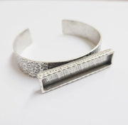 Bracelet Blank Resin Dry Flower inlay Blank Cuff Bezel Glass Cabochon Base Hammered Adjustable Antique Silver (50x10mm) G36088
