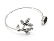 Branch Leaf Silver Bracelet Blank Resin Cuff Dry Bezel Cabochon Base Adjustable Antique Silver Plated Brass (10mm Blank) G26922