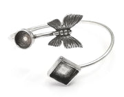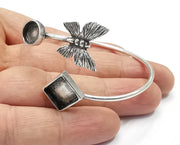 Silver Butterfly Bracelet Blanks Resin Cuff Dry Bezel Cabochon Base Adjustable Antique Silver Plated Brass (10 and 8mm Blanks) G26868