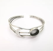 Crescent Moon Bracelet Blank Resin Bezel Cabochon Cuff Base Setting Adjustable Bracelet Antique Silver Plated Brass (14mm Bezel) G33099