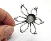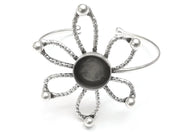 Flower Bracelet Brass Cuff Blank Bezel Glass Cabochon Base Adjustable Antique Silver Plated Brass (14mm blank) G27097