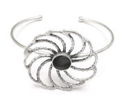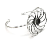 Flower Bracelet Brass Cuff Blank Bezel Glass Cabochon Base Adjustable Antique Silver Plated Brass (10mm blank) G27099