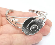 Flower Butterfly Bracelet Blanks, Cuff Bezels Cabochon Bases Resin Mountings, Cuff Frame, Antique Silver Plated Brass (8mm bezel) G26461