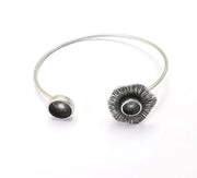 Silver Flower Bracelet Blank Cuff Bezel Cabochon Base Resin Mountings Adjustable Antique Silver Plated Brass ( 6mm - 8mm Blanks) G26880