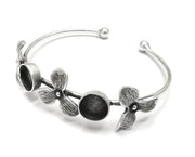 Flower Silver Bracelet Blank Resin Cuff Dry Bezel Cabochon Base Adjustable Antique Silver Plated Brass (10mm Blanks) G27102
