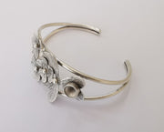 Flowers bracelet brass cuff blank bezel Glass cabochon base Adjustable Antique Silver plated (8mm ) G25535