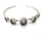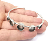 Oval bracelet brass Cuff blank bezel Glass cabochon base Adjustable Antique silver plated brass G29642